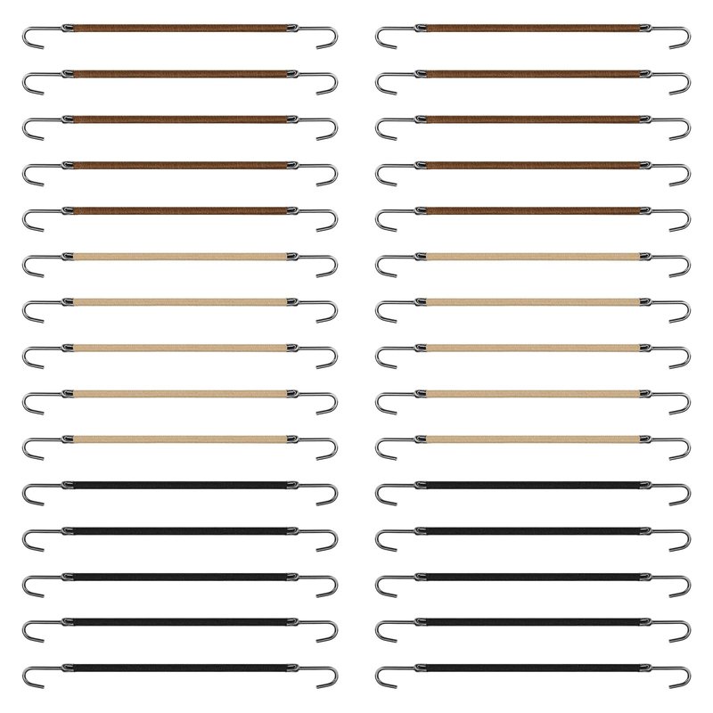 30 Pieces Elastic Bungee Hair Ties, Hair Bungee Cords with Hooks, Bungee Cord Hair Tie (Black, Coffee and Apricot)