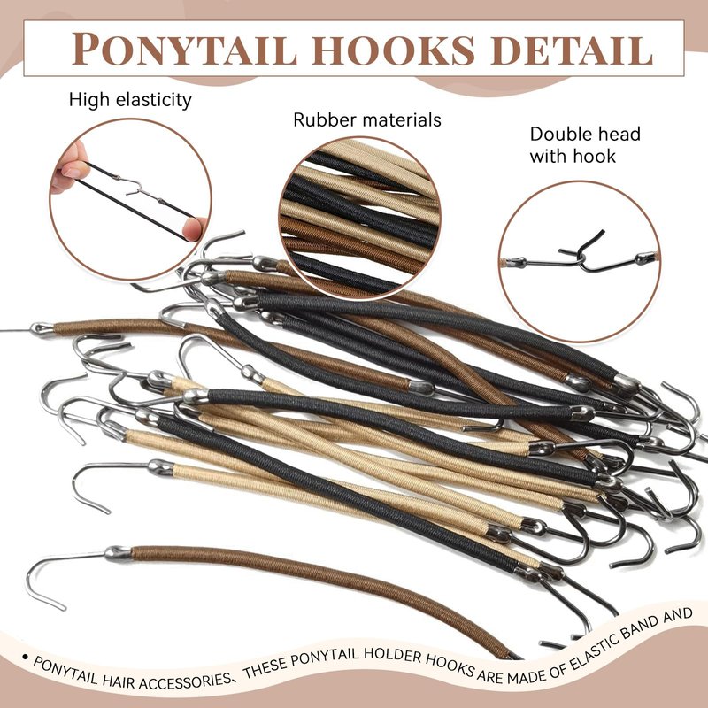 - 【Premium Materials】These ponytail hooks are made of elastic rubber and metal hooks with smooth metal edges that can be used for a long time. High quality polyester and elasticity ensure longer service life of this hair hook.