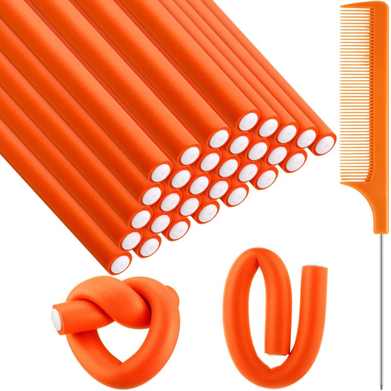 - Sufficient quantity: you will get 30 pieces flexible curling rods in bright orange color, come with 1 piece steel pintail comb, totally 31 pieces, enough quantity to satisfy your daily demands, nice combinations for you to DIY your favorite curly hair, you can also share it with your family and friends