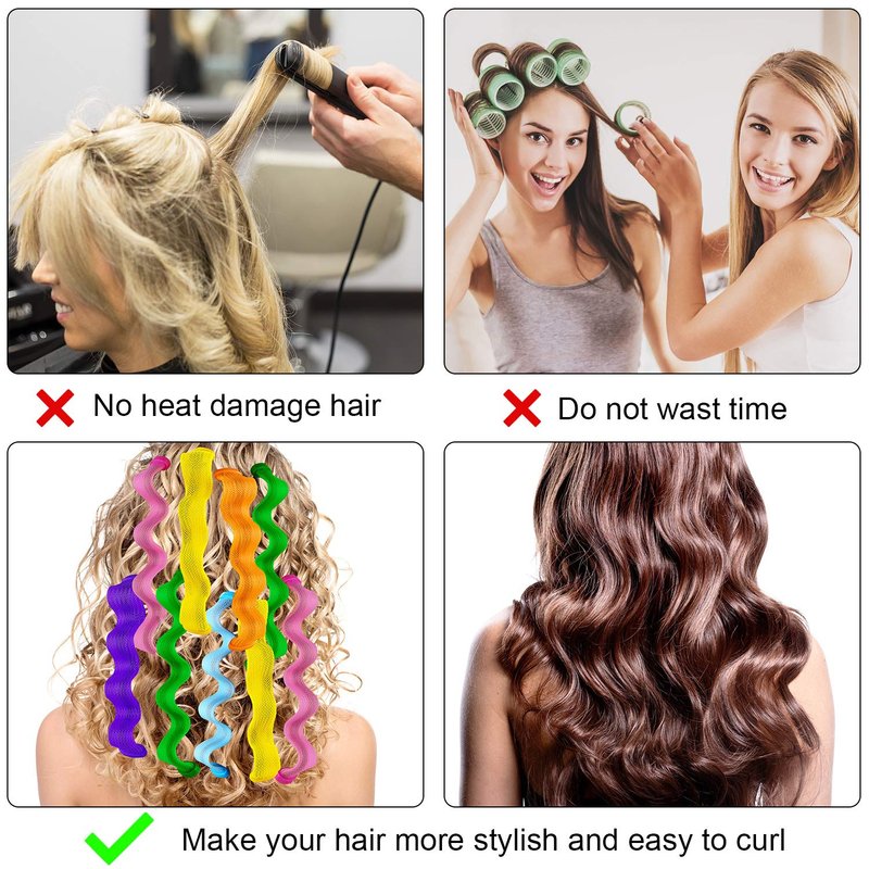 - Harmless to hair: our no heat hair curlers can help you make beautiful and natural hair curls easily and quickly, unlike traditional heated styling irons, these hair curlers will not cause damage to your hair, suitable for damaged, weak or fragile hair, also can work well with hair extensions and wigs