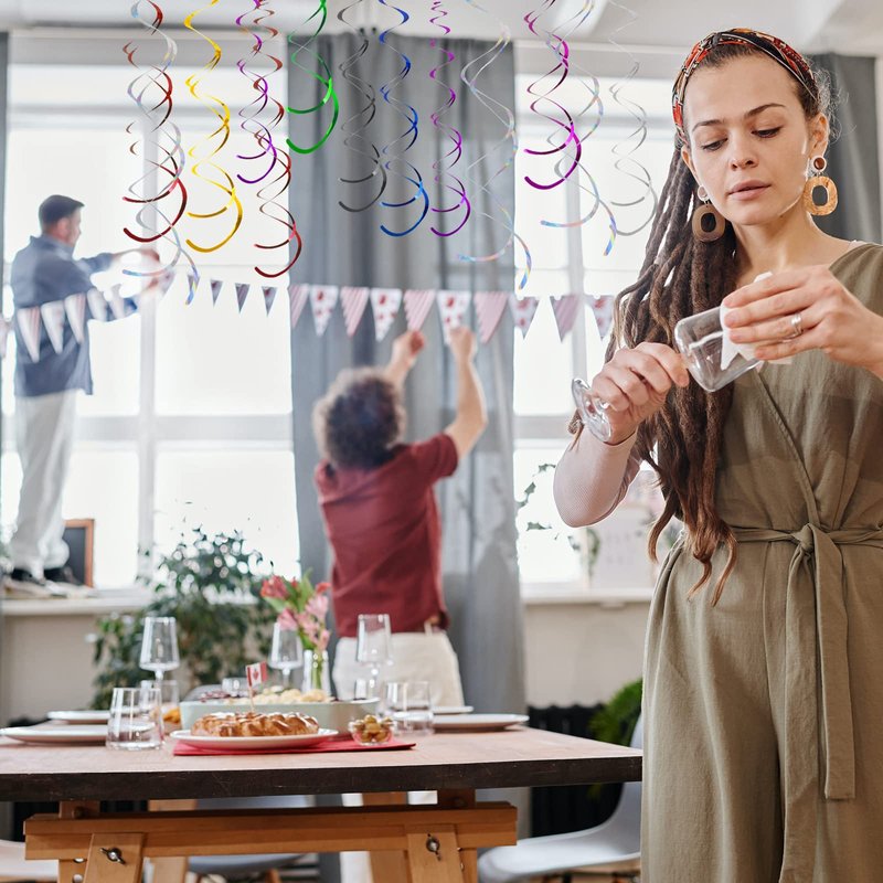 - 【Wide Applications】This iridescent hanging swirl has brilliant color and can be hung anywhere. Suitable for birthday party, graduation party, baby shower, anniversary, wedding, holiday party and other theme party.