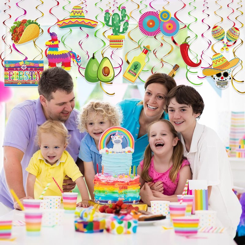 - Mexican Theme Elements: the Mexican fiesta hanging swirl decorations is a Mexican fiesta themed party, with wide brimmed hats, cacti and guitars, as the main elements, bright colors, cute and delicate patterns; Fiesta hanging decorations swirls are suitable for Mexican party, cinco de mayo, taco party or Mexican fiesta themed bachelorette party