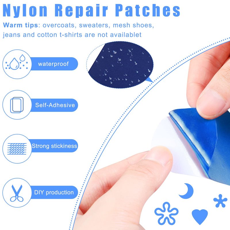- Self Adhesive Function: the nylon repair patch is self adhesive, you only need to peel it off and paste it on the place that needs to be repaired, no sewing or ironing required, also will not leave obvious repair traces, can save you a lot of trouble