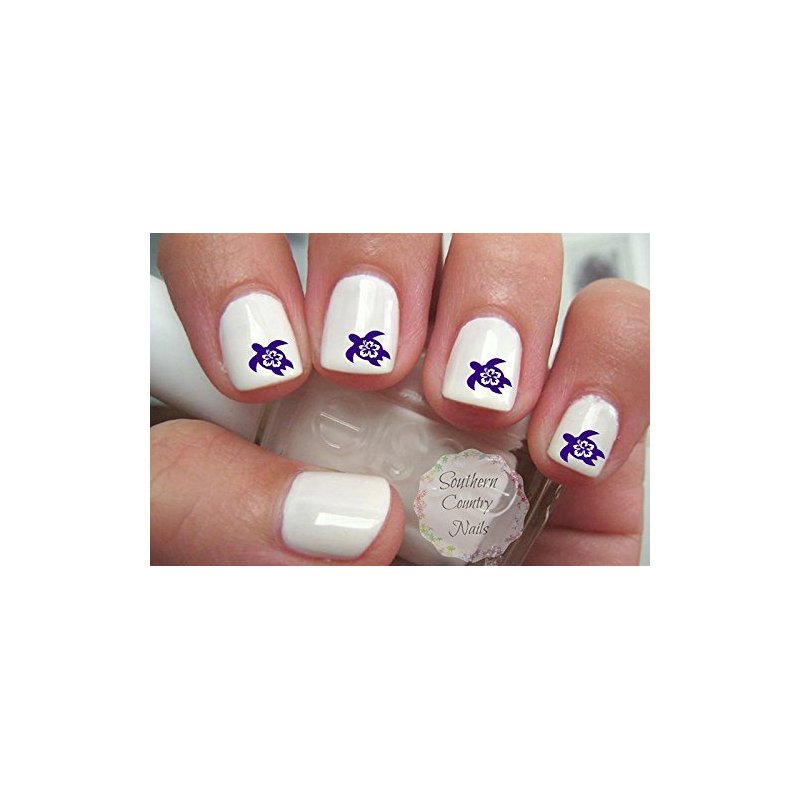 30 Sea Turtle Hibiscus Flower Purple Nail Art Decals