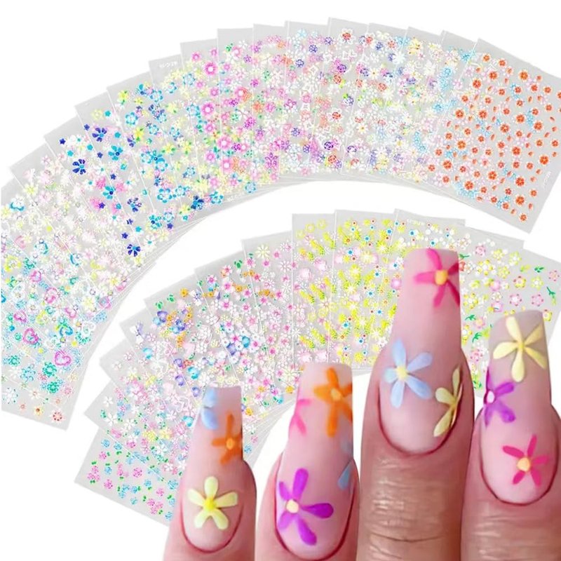 - Easy to Use: Flowers nail art stickers is self-adhesive and requires no glue, Just use tweezer to peel off nail stickers and stick nail decals on your nail, you can use a layer of nail polish to fix for long-term lasting.