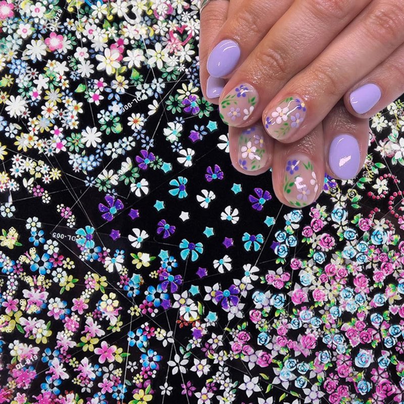 - Self-Adhesive Design: Colorful Flower self-adhesive nail art design is simple and quick to use, nail decals work great on bare nails, they will stay on for a long time and will not peel off your nails, enjoy the feeling of nail art. Make your nails shiny and elegant for all your dazzling nail design needs.