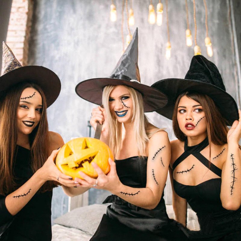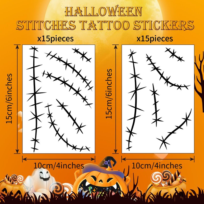 - Unique Designs: the black stitches design temporary tattoos sticker can make it more realistic and natural, it is a trick to frighten friends. Suitable for adults and children, you can applied on the skin of hand, arm, shoulder or leg, perfect Halloween accessories and great addition to used at cosplay, masquerade and Halloween party