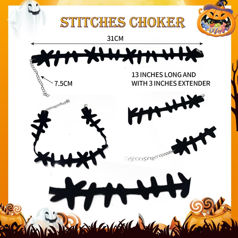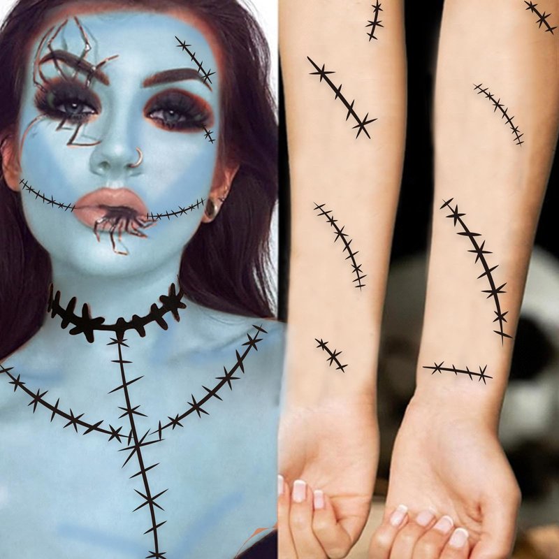 Fake scars stitches tattoos and stitches necklace choker are perfect for Halloween party, enjoy your Halloween Cosplay Party with these Stitching Temporary Tattoos Stickers and Stitched Neck Choker