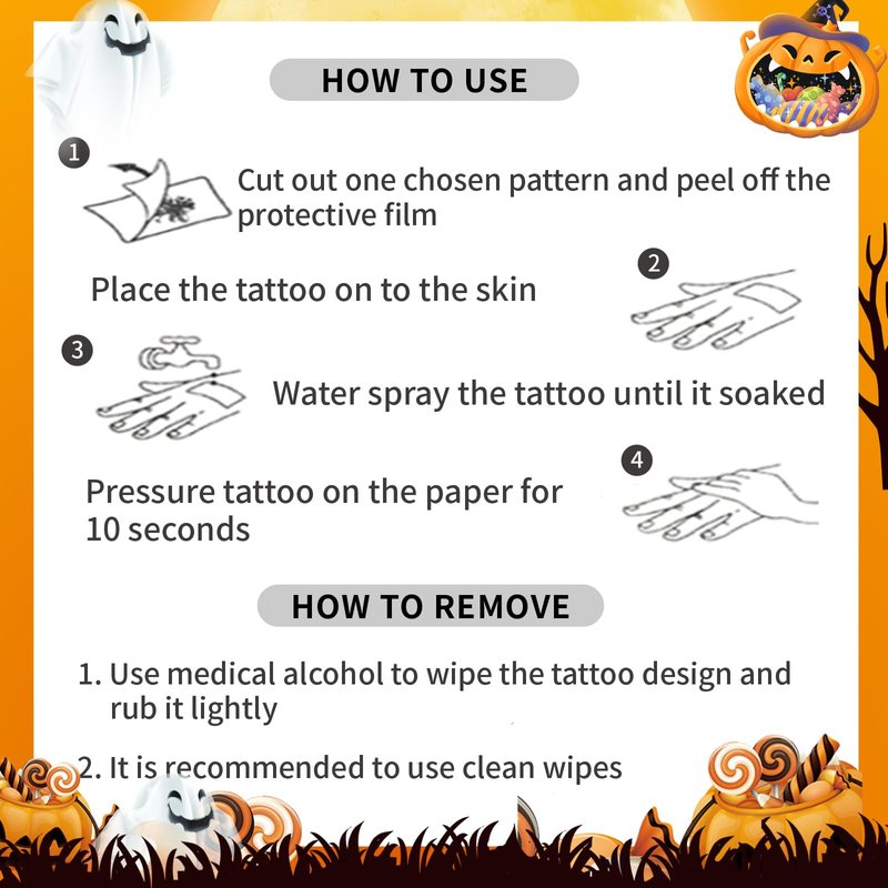 - Easy to Use: cut out the pattern and peel off the protective film, apply the fake tattoo stickers to completely dry skin, wet the tattoo with water and press for about 20 seconds, then peel off the backing paper. The tattoo will last about 2-4 days and can also be easily removed with baby oil, warm water, and soap