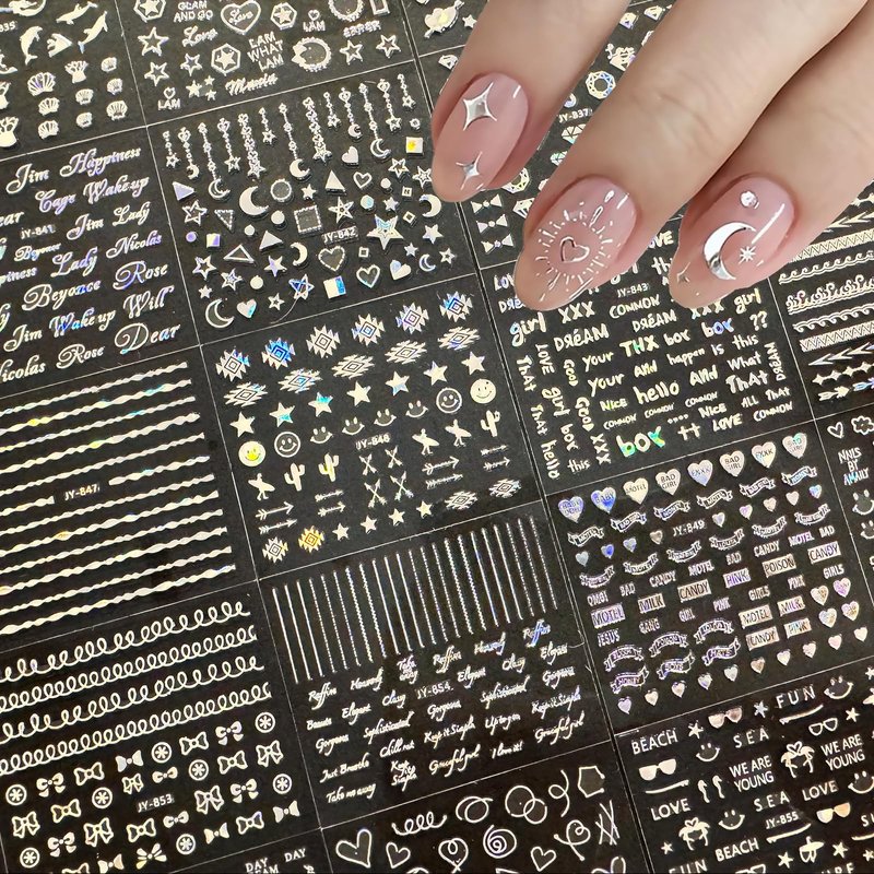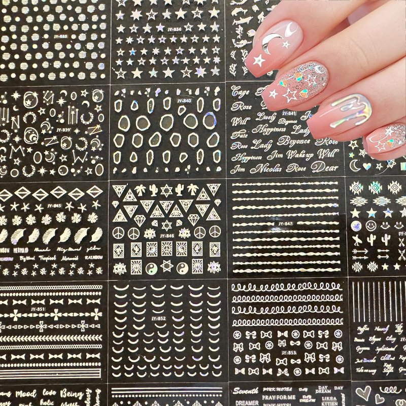 - Widely used:Not only for luxurious silver nail art accessories, our silver series letter nail stickers are also for decoration of your mobile phone cases, greeting cards, body art, etc. Suitable for home use and professional nail salon.