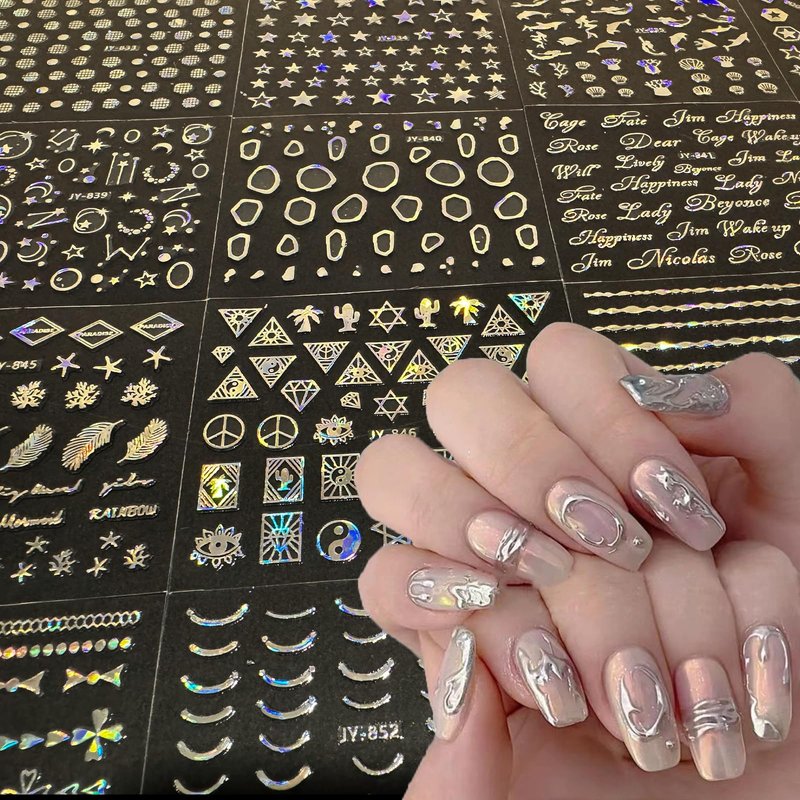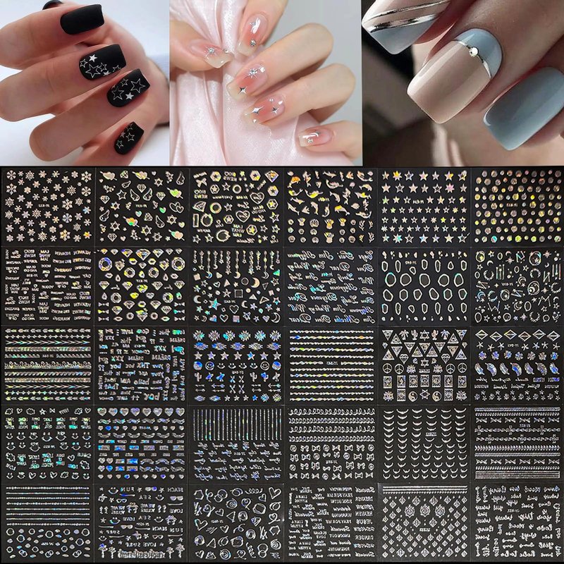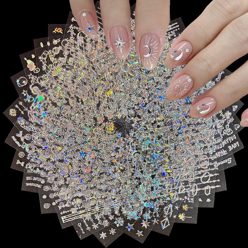 - Good Service:If you have any questions about these laser silver nail stickers, Please contact us when you are available. If it is a transportation or quality problem, we provide the service of replacement and return.