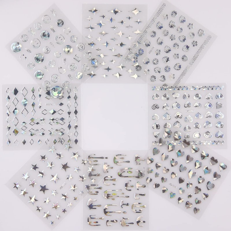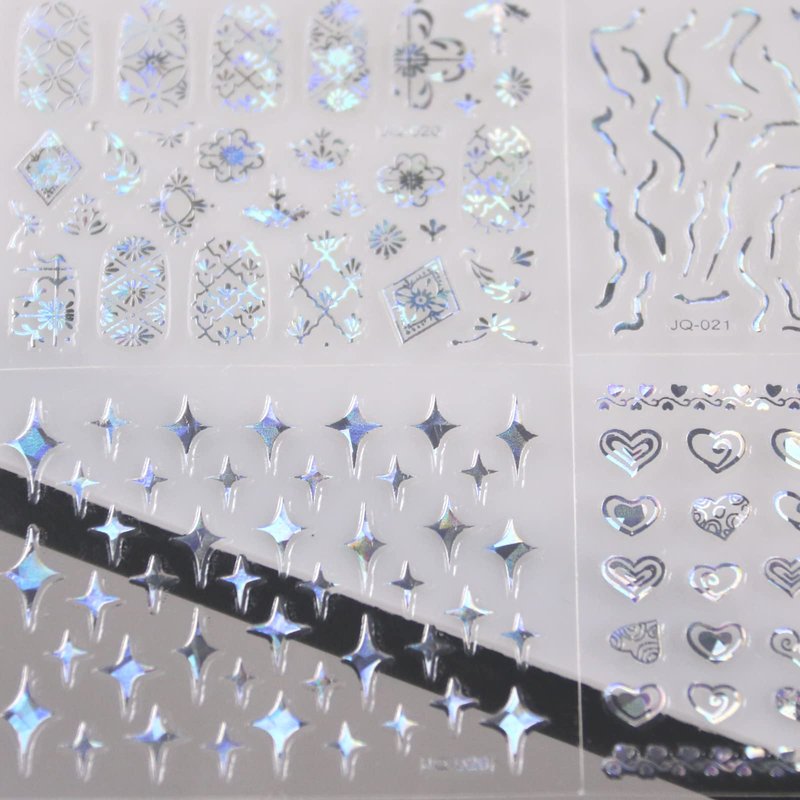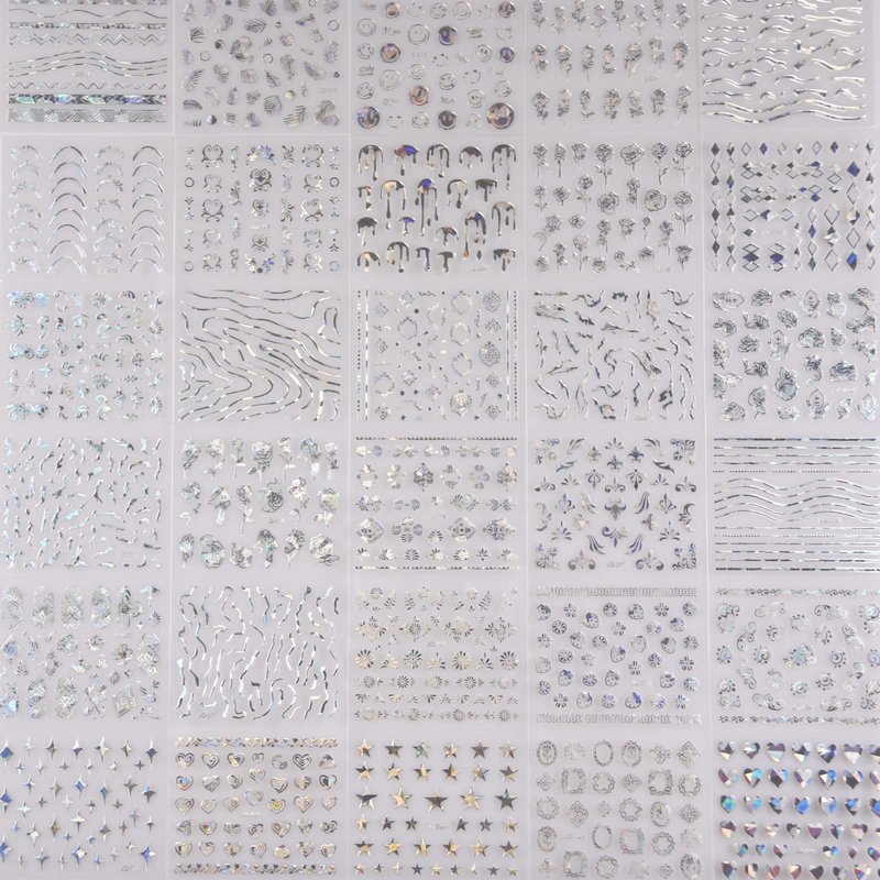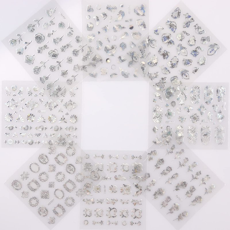 - Style: Silver Flower Nail Stickers