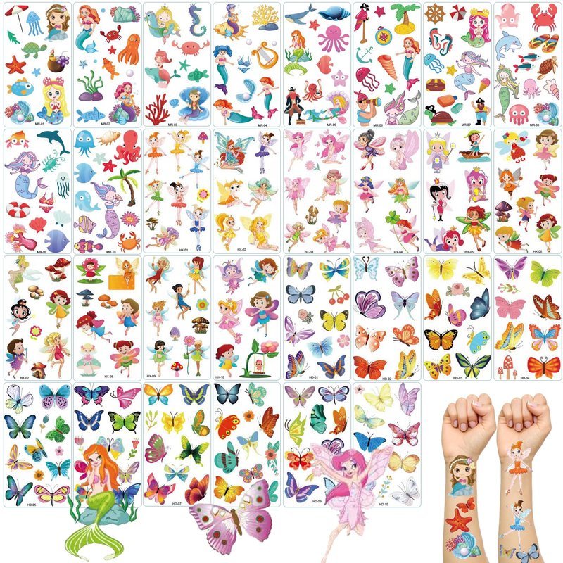 - 【30 SHEETS】You will get 30 temporary animal-themed tattoos , 224 in total.including 3 themed patterns: Mermaid & Flower Fairy & Butterfly, All bright patterns that kids will love.