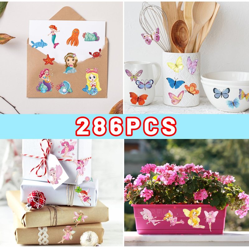 30 Sheets Temporary Tattoos Kit, 286Pcs Fake Cute Tattoo Stickers Waterproof, Birthday Party Favor (Mermaid & Flower Fairy & Butterfly)