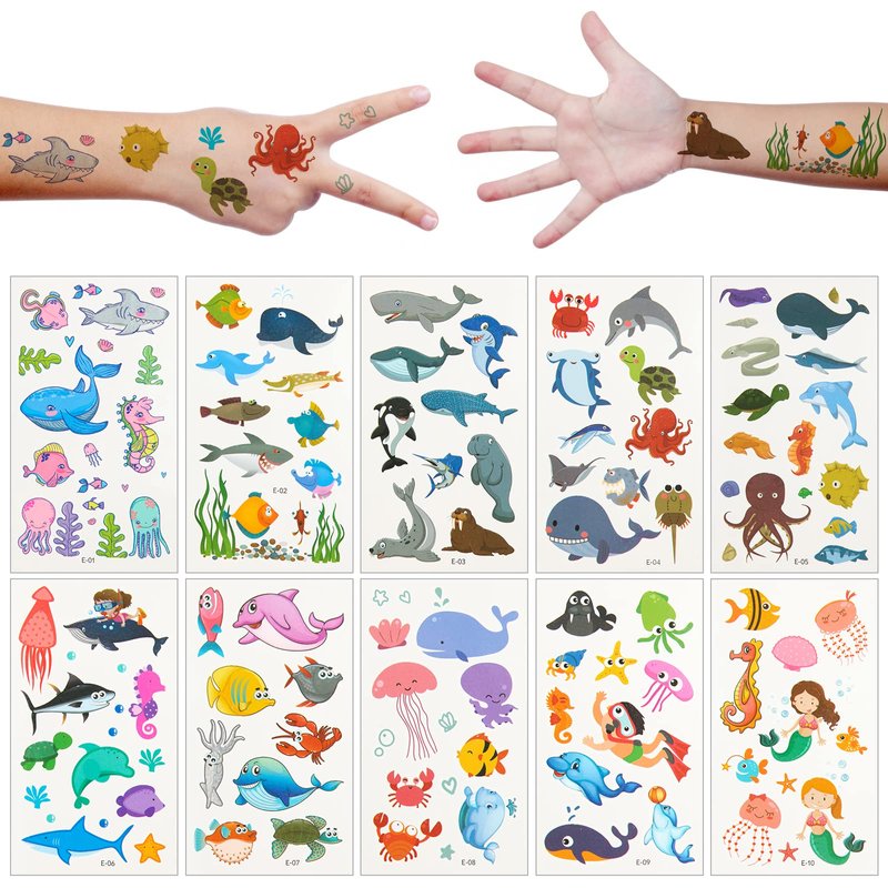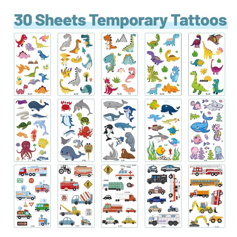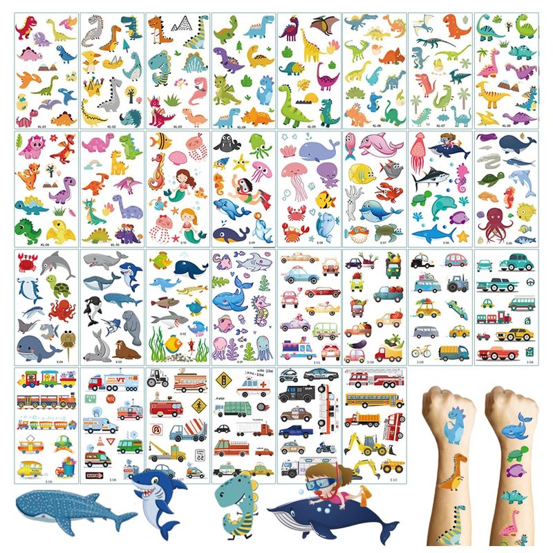 - 【Great Fun for Kids】Great for all ages. Kids will love the variety of playful dinosaurs more. A fun thing for dinosaur-lovers! The kids temporary tattoos suitable for children's birthday parties, school rewards supplies, sea-themed parties, animal parties, boys cars parties, outdoor camping etc.