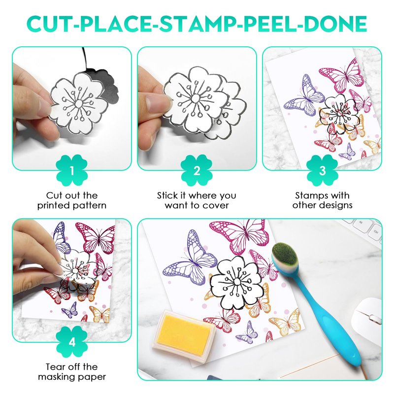 - REPOSITIONABLE & REUSABLE: Our Masking Paper Holds up Well When Inking Backgrounds and Support Perfect Masks for Stamping, Which Can Be Used Multiple Times. When Peel Off, Come Right Off in A Snap, without Ruining Paper Underneath