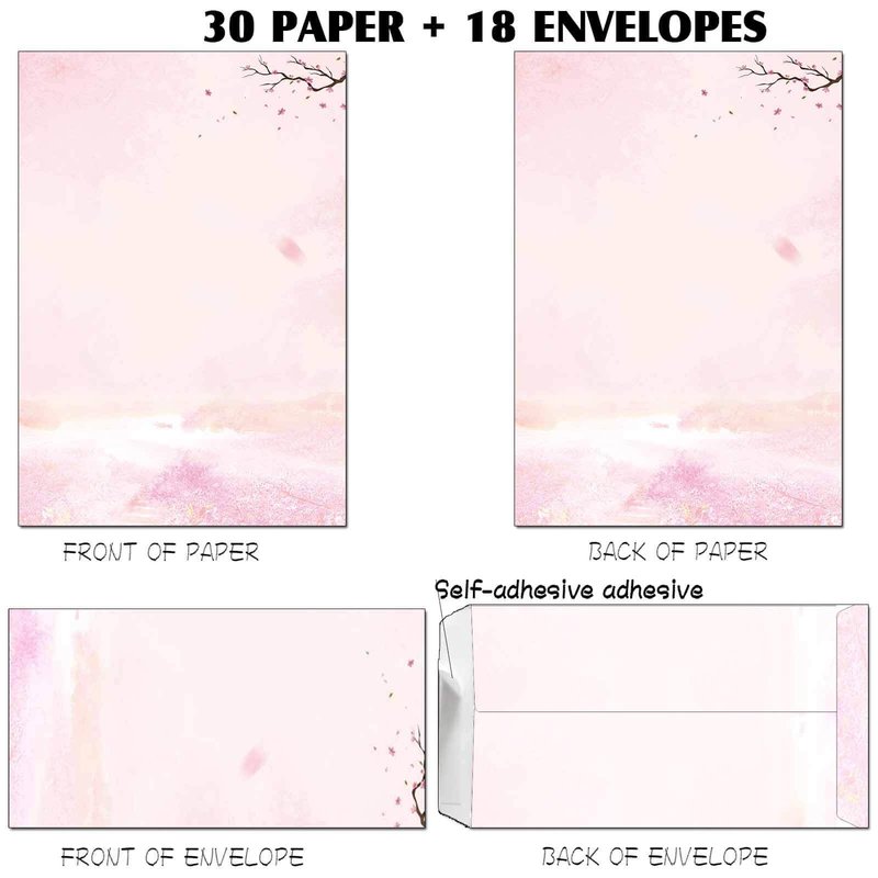30 Stationery Writing Paper with 18 Self Adhesive Envelopes, Stationary Set for Writing Letters, Cute Stick Stationary Set, 6 Unique Designs, Double Sided Printing (48)