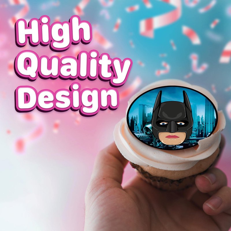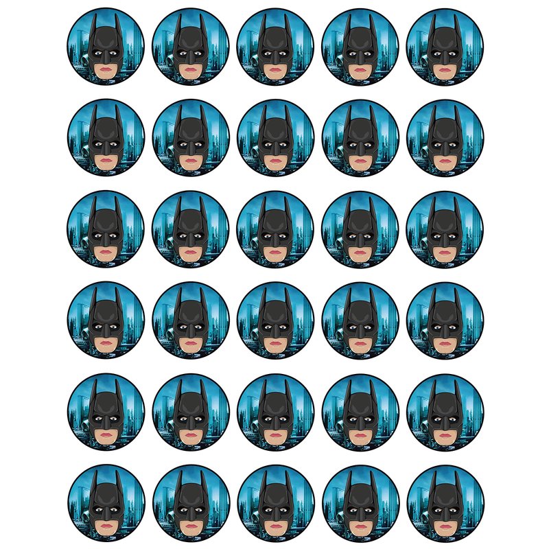 30 x Edible Cupcake Toppers Themed of Batman Face Collection of Edible Cake Decorations | Uncut Edible on Wafer Sheet