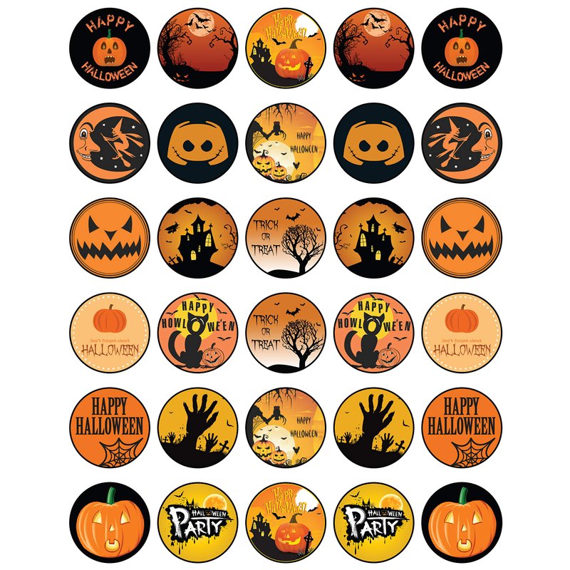 30 x Edible Cupcake Toppers Themed of Halloween Collection of Edible Cake Decorations | Uncut Edible on Wafer Sheet