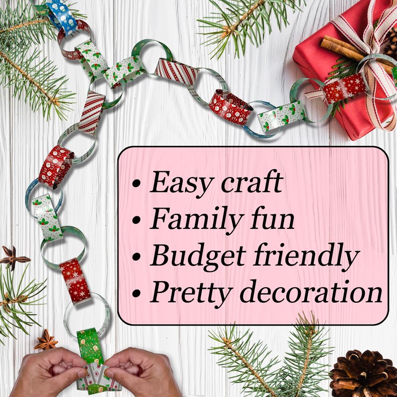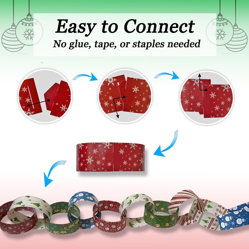 300 Christmas-Themed Paper Chain Strips for Crafting. No Glue or Tape Needed. Kid Friendly & Family Fun. 10 Winter Patterns. Yields Over 50 Feet of Paper Chains for Party Decorations (Christmas)