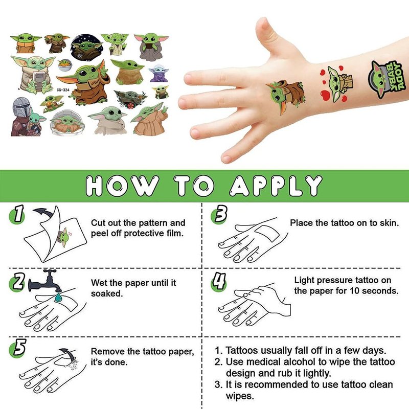 - 【Material】Our Yoda tattoo stickers are made of water transfer paper, PET film, glue, etc., which can be used safely, are waterproof and not easy to fade, and are harmless to the skin.