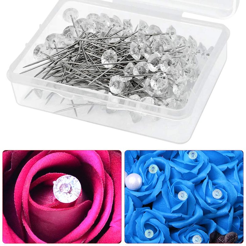 - 300 pcs Crystal Floral Bouquet Pins:These plastic diamond Head Pins come with 3 box and each box is 100pcs.Box is easy to collect these pins to avoid the pin tip hurt your finger.They are clear and it looks like glistening raindrops under soft candle lights.