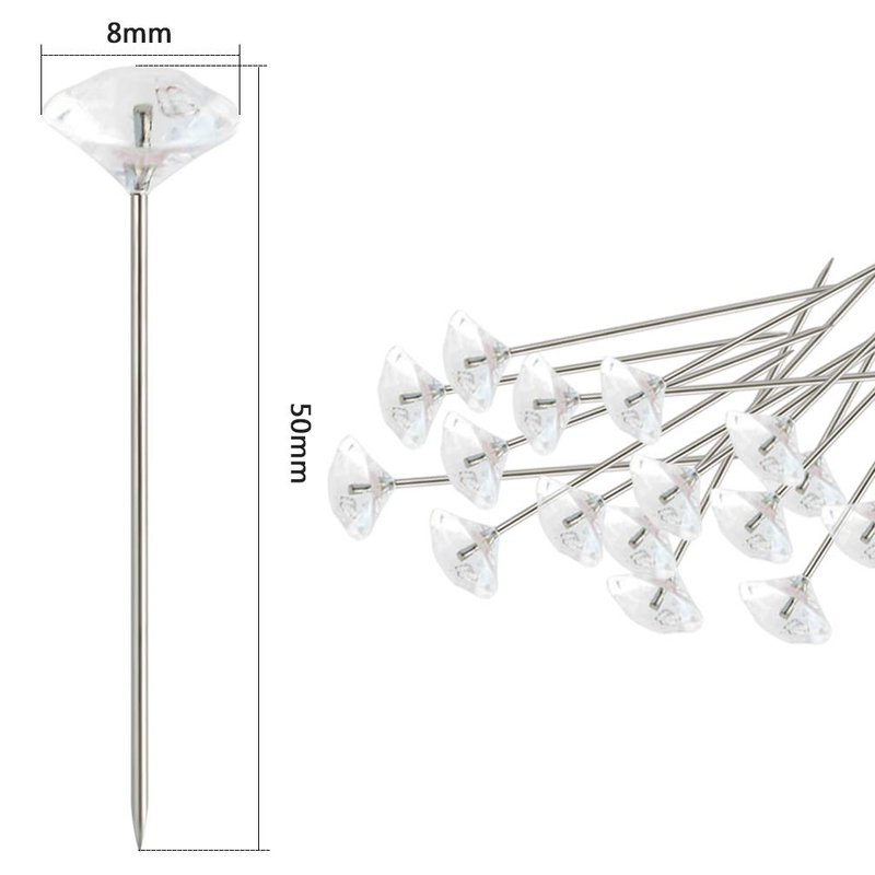 - Perfect Size Head Pins :Steel metal bits, plastic diamond: not easy to bend when decorating bridal bouquets.Metal bits length: metal bits is 1.85 inch; Diamond diameter: 8 mm; Total diamond head pins length: 2 inch.