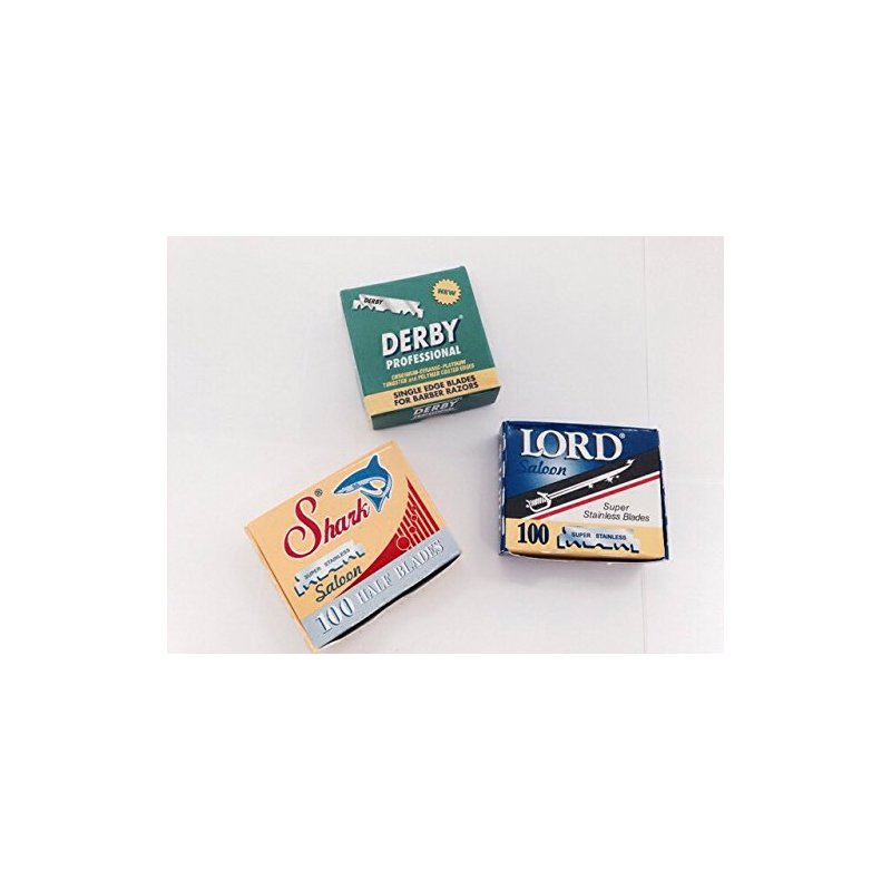 300 Variety Razor Blades -- 100 Pack of Lord, Shark and Derby --Barber Shavette Blades Single Blades