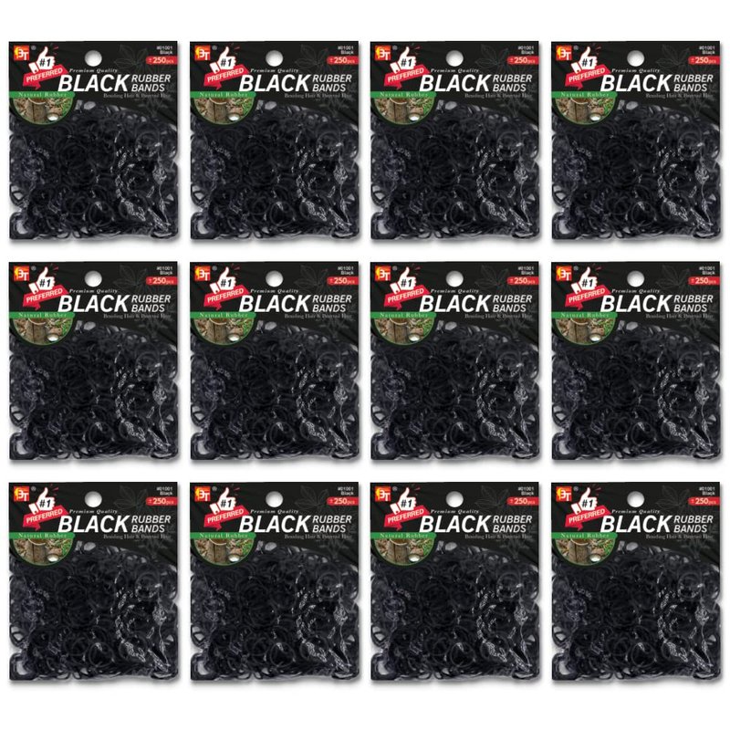 3000 Pcs Rubber Bands 0.6 lb Hair Band Soft Elastic Hair Accessories Braids Mini Hair Ties Stretchy Made in Vietnam Hair Ties No Damage Rubber Bands for Hair (Black - 12 Pack of 250 Pcs)