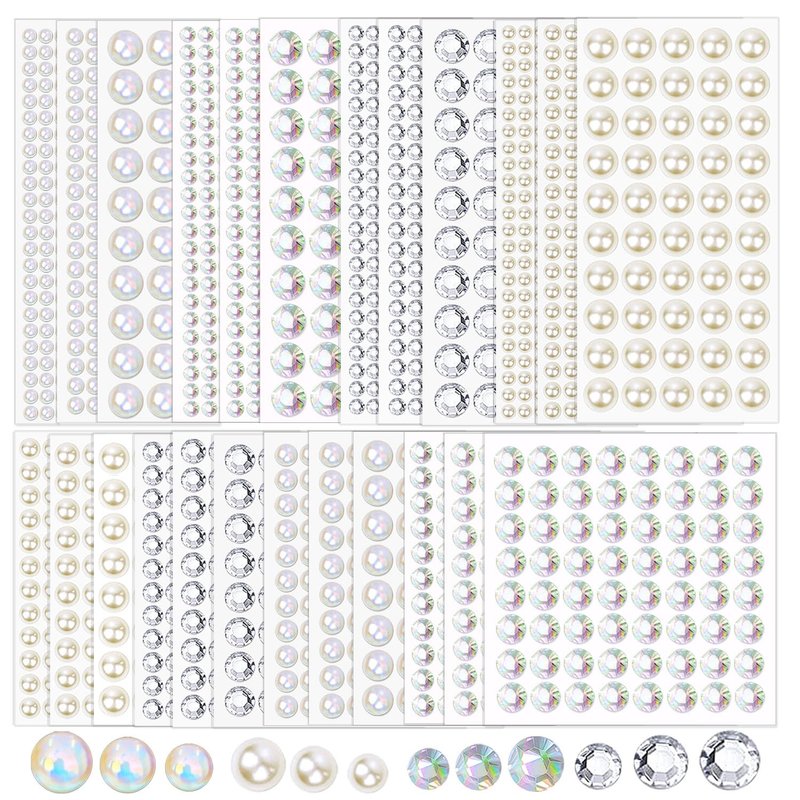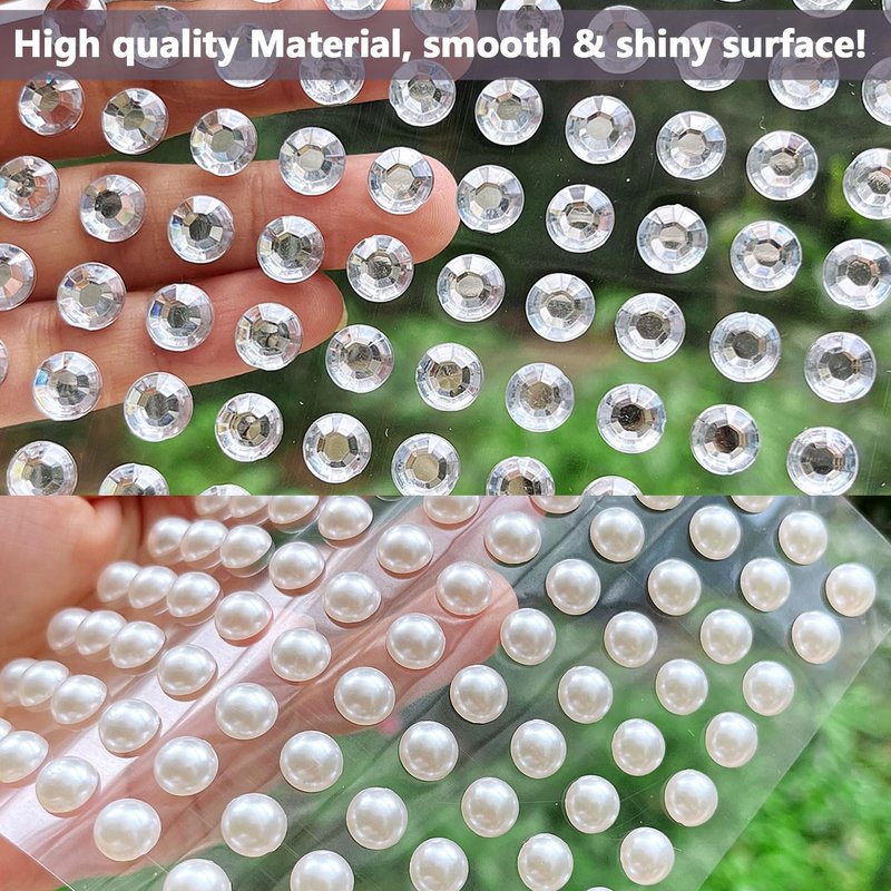 - 3000 Pearl Stickers & Rhinestone Sticker - Our self adhesive rhinestone and pearl pack includes 12 sheets pearl stickers and 12 sheets rhinestone stickers, a total of 3000 pieces stick on pearls and rhinestones in 6 sizes and 4 colros, including 800 pieces of 3mm, 800 pieces of 4mm, 400 pieces of 5mm, 400 pieces of 6mm, 400 pieces of 8mm, 200 pieces of 10mm, enough quantity and assorted sizes to meet your various makeup and craft projects needs.