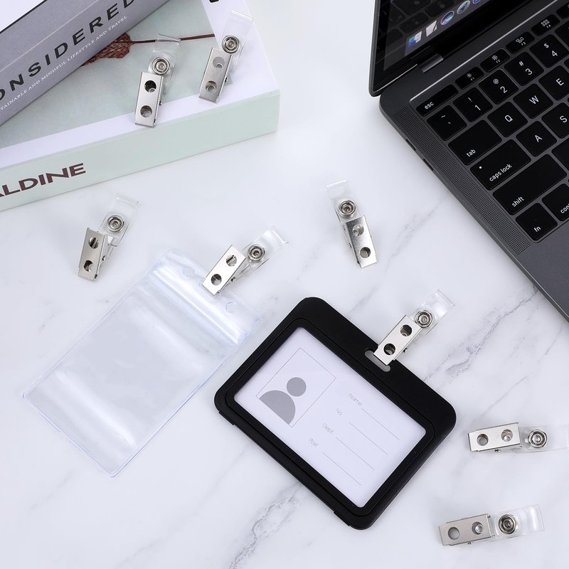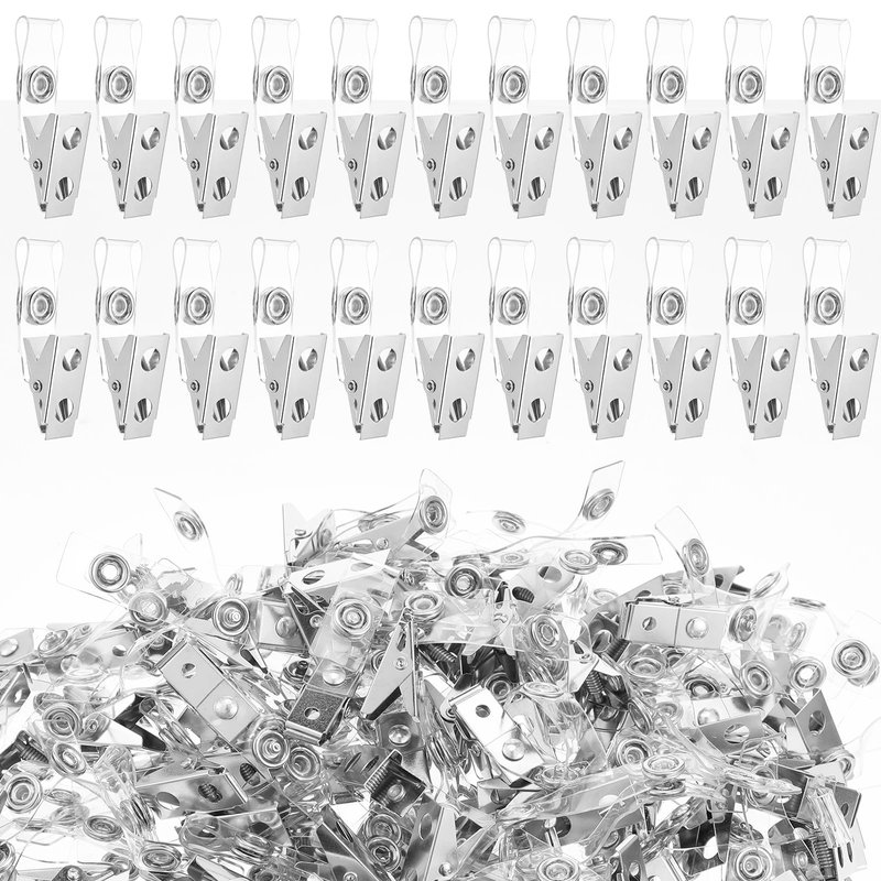 300pc Metal Badge Clips with Strap Clear ID Strap Clip Adapter