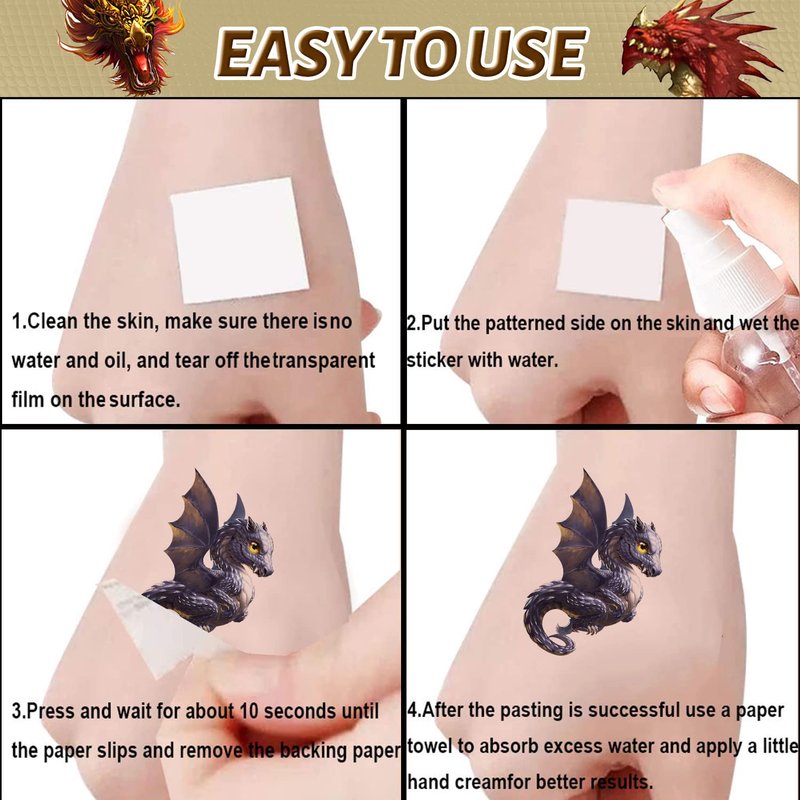 - 【Dragon Party Favors】: Our long lasting temporary tattoos are designed with various styles of dragon elements, combining the ancient mysterious legends of the East and the dragon with wings of fire in the Western world, it stimulates children's desire to explore and seek knowledge, it’s great for kids and adults who love dragon themes.