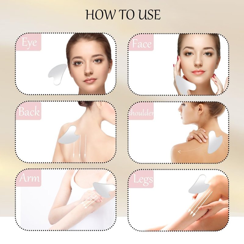 - Wide Application: Our metal gua sha massage tool is suitable for many parts of the whole body, which can be used for face, back, legs, wrists, arms, neck, shoulders, releasing muscle tension through gua sha massage, which can promote blood circulation and improve the efficacy of lymphatic detoxification
