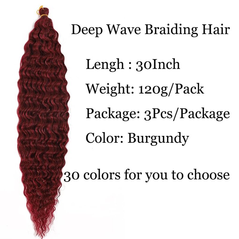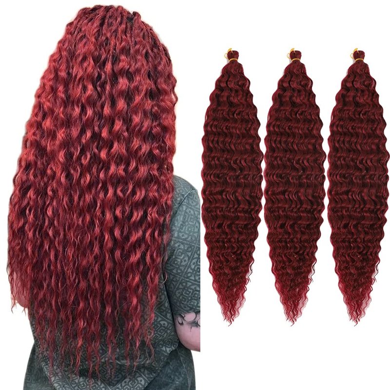 30inch Ocean Wave Braiding Hair Extensions 3packs Long Deep Curly Wave Braid Hair Synthetic Twist Ripple Crochet Deep Wave Braids Hair for Women 100g/pack(30",Burgundy)