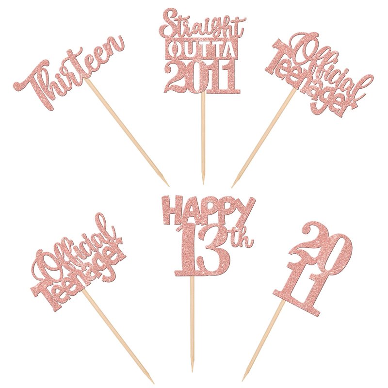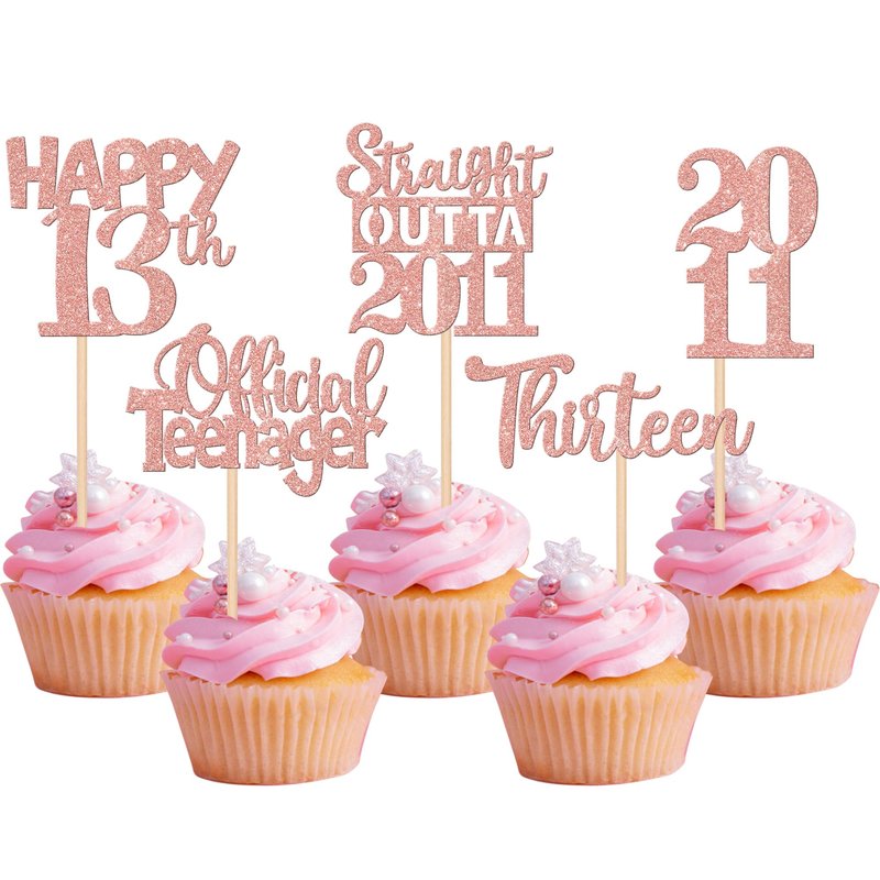 30PCS 13th Birthday Cupcake Toppers Glitter Thirteen Happy 13th Straight Outta 2011 Cupcake Picks for Cheers to 13 Years 13th Birthday Anniversary Party Decorations Supplies Rose Gold