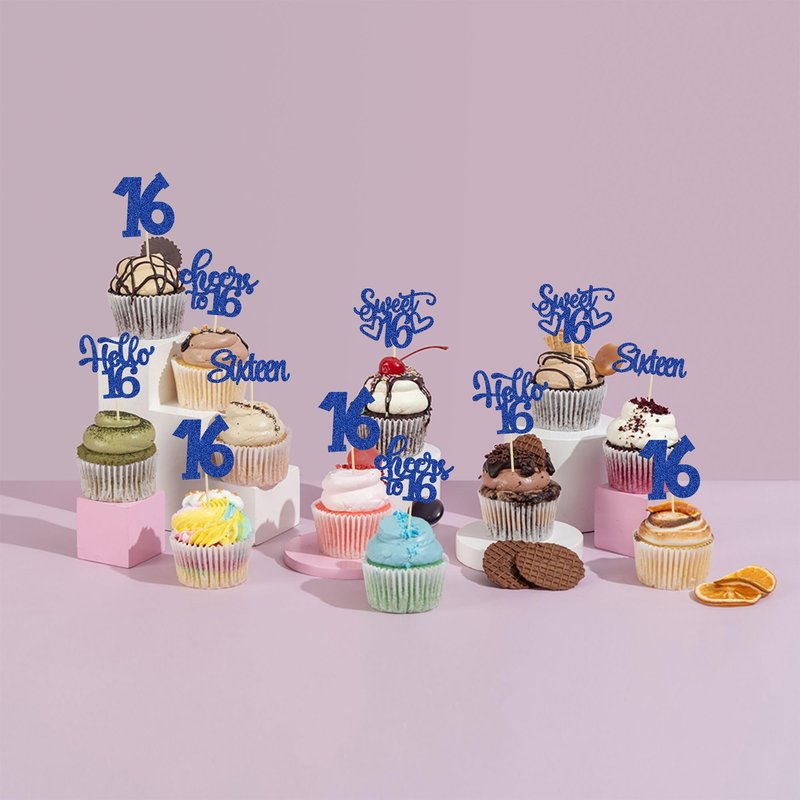 - -These Happy 16th Birthday Cupcake Toppers are so cute and good for happy 16th birthday theme party, cheers to 16 years theme party, 16 fabulous theme party, happy 16th birthday anniversary theme party cake decorations. They can make your cupcake more attractive and bring the fun to your party. You can also apply them for ice cream, fruits, cookies and other desserts.