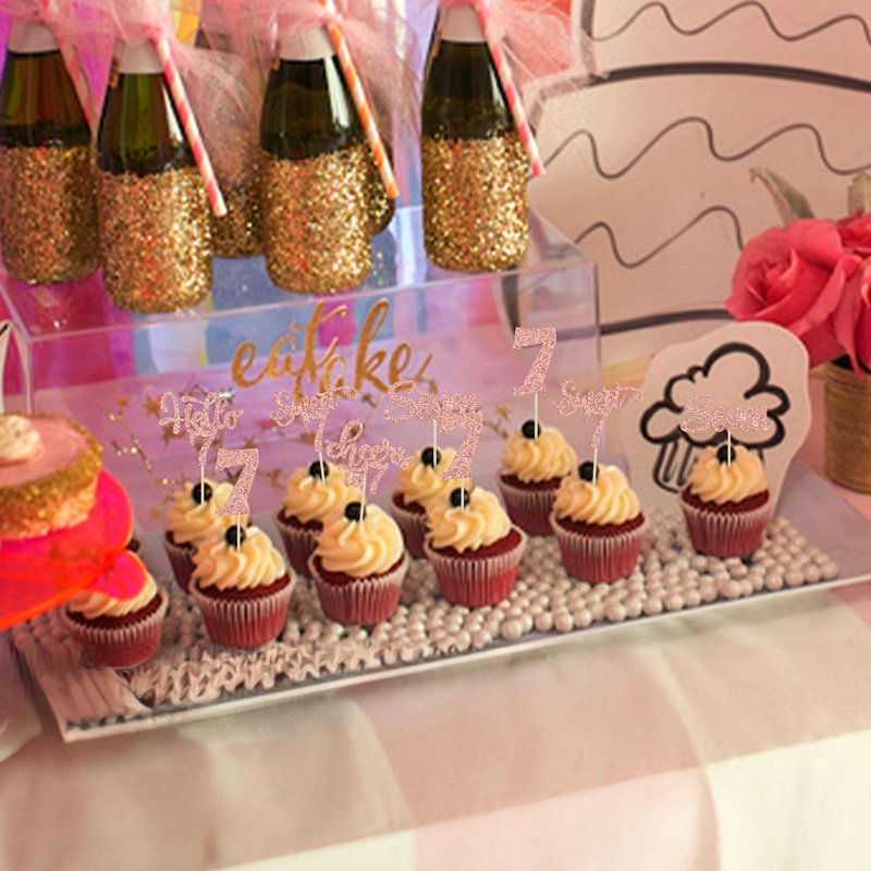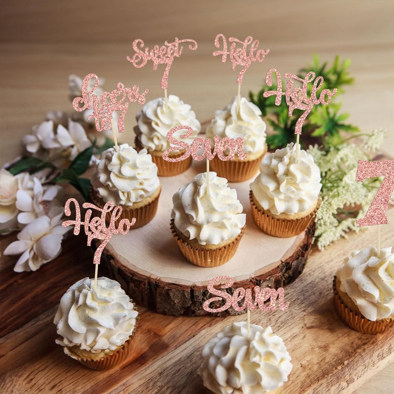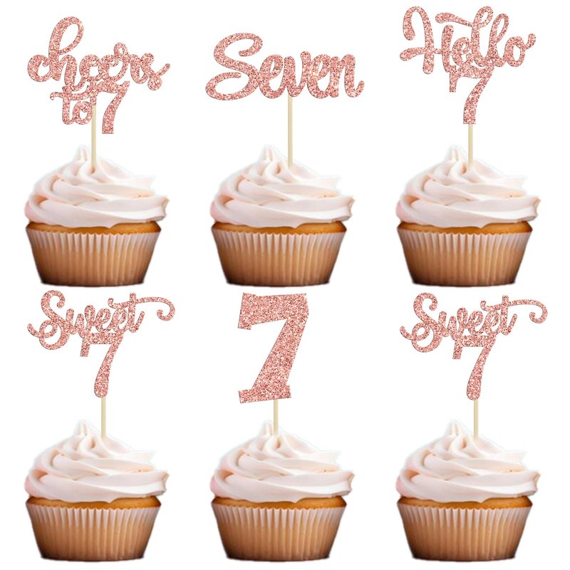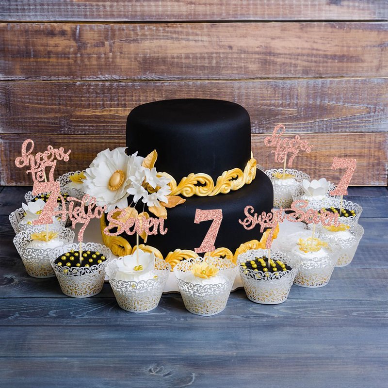 - -These Happy 7th Birthday Cupcake Toppers are so cute and good for happy 7th birthday theme party, cheers to 7 years theme party, 7 fabulous theme party, happy 7th birthday anniversary theme party cake decorations. They can make your cupcake more attractive and bring the fun to your party. You can also apply them for ice cream, fruits, cookies and other desserts.