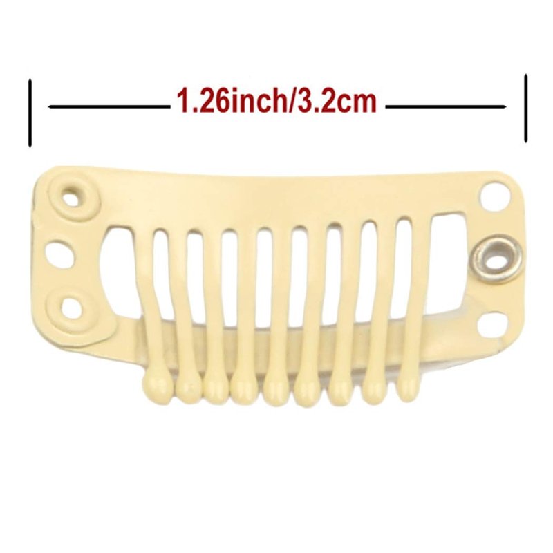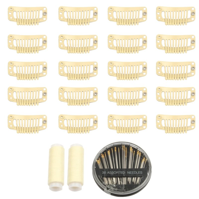 30pcs 9 Teeth Stainless Steel Snap Comb Wig Clips, Hair Extension Clips, Wig Accessories Clip with 30 Assorted Sewing Needles and 2 Rolls Thread (Beige)