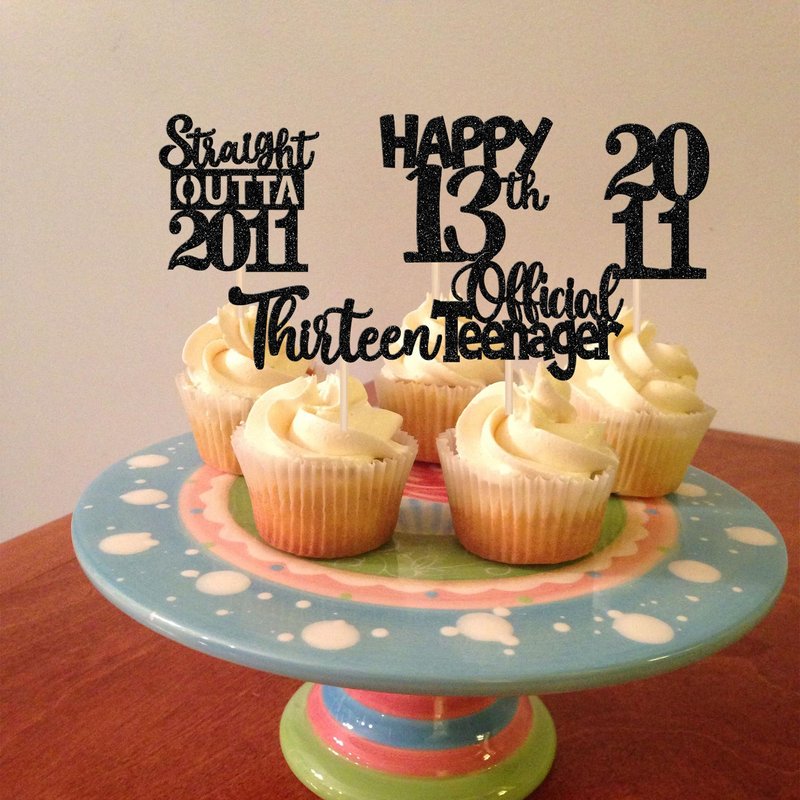 - Wide Usages ! These straight outta 2011 cupcake toppers are perfect for happy 13th bithday theme party, straight outta 2011 theme party,13th wedding anniversary theme party,cheers to 13 years theme party cupcake decorations, they can make your cupcake more attractive and bring the fun to your party.You can also apply them for ice cream, fruits, cookies and other desserts.