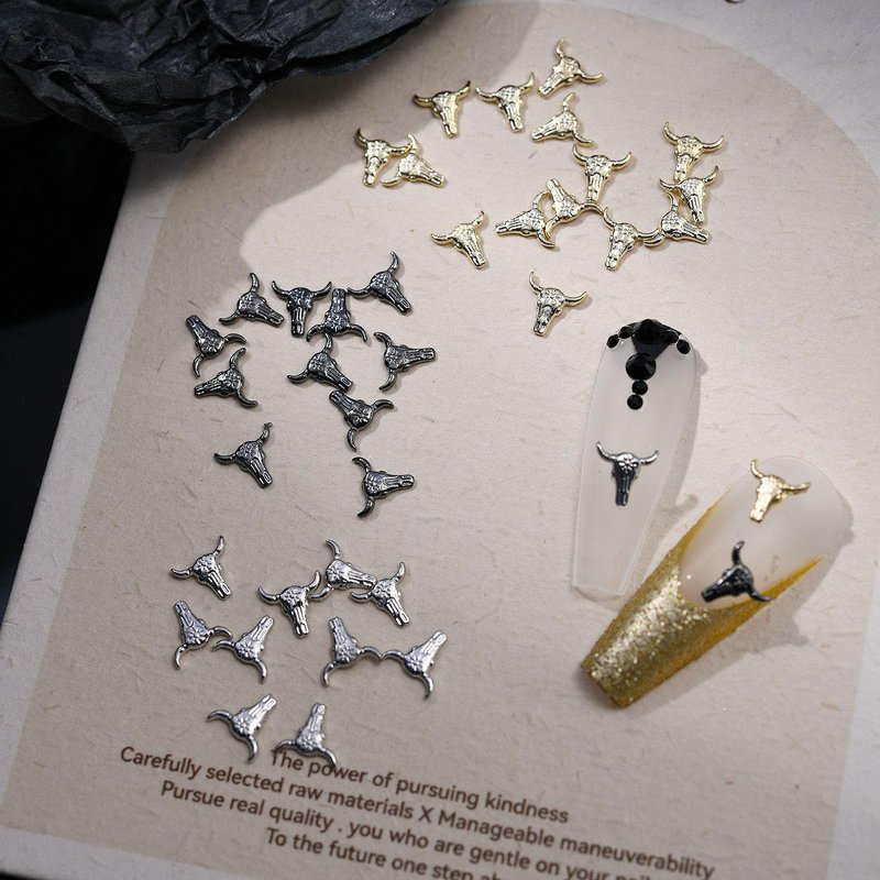- Great Quality: Our bull head nail accessories are made of quality alloy, sturdy and not easy to fade or break. The material is safe and environment-friendly, not limited to any skin, and safe to use, suitable for most natural and acrylic nails.
