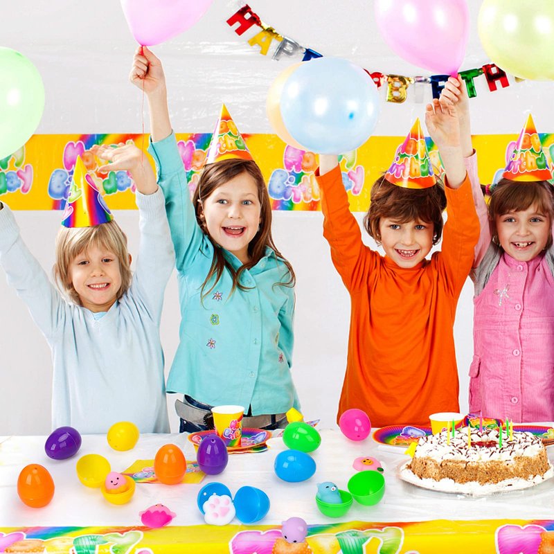- 🥚[Perfect Design]:Our suprise eggs with toys inside include 6 colors featuring yellow, blue, pink, purple, green and Red color, the bright rainbow color will add a touch to your Easter. And we also give away 24 kinds of mochi squishy squeeze toys include bunny, piggy, star, etc. These mochi squishy squeeze toys are soft squeeze and stretchy, jelly-like, will not crack or tear, can be used as stuffers of the Easter eggs, they are a great match for Easter gifts.