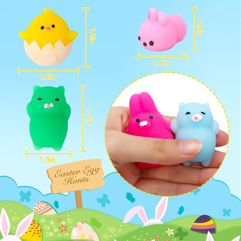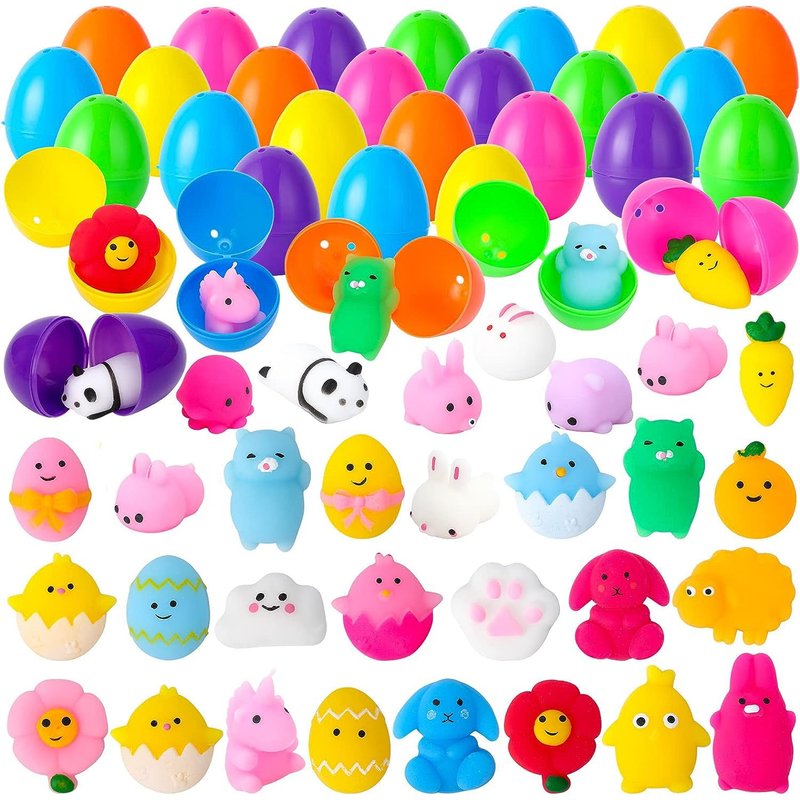 - 🥚[Premium Material]: Our toy filled easter eggs are made of eco-friendly and safe polypropylene thick plastic, sturdy and durable, non-breaking and non-toxic, high quality and can be reused. Our mochi squishy squeeze toys are made of high-quality silica gel, non-toxic and odorless, you can use without worries.