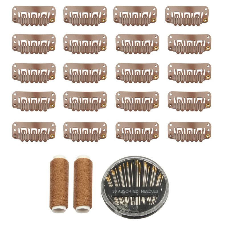 - The package include: 30pcs wig clips,2pcs sewing thread and 30 Assorted Needles