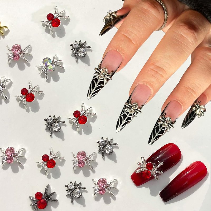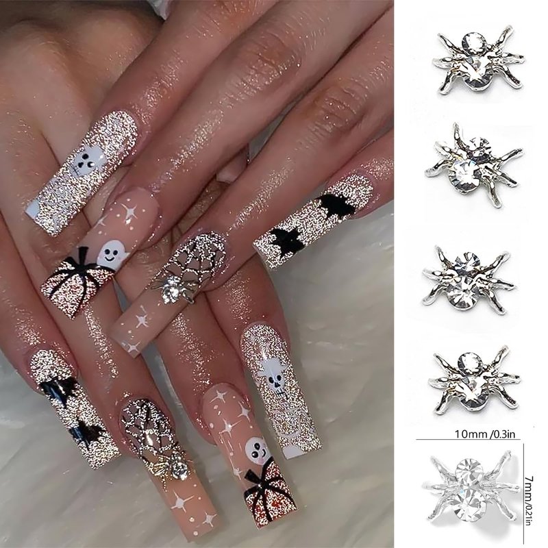 - 3D Halloween Nail Rhinestones: Spider nail rhinestone are made of 3d metallic and artificial rhinestones, they are hard and not easily break,no damage to fingernails, any style of nails can use it