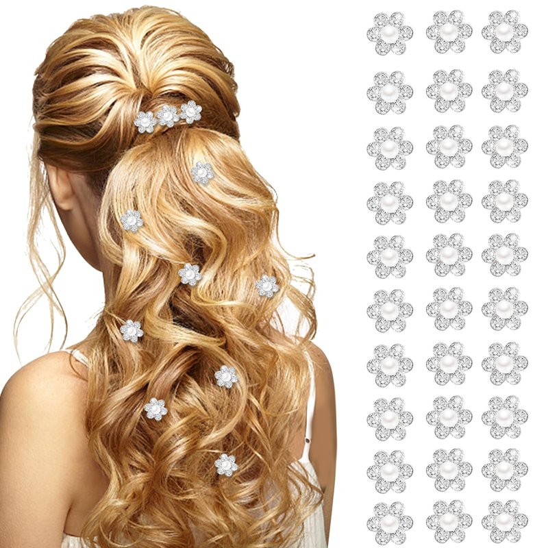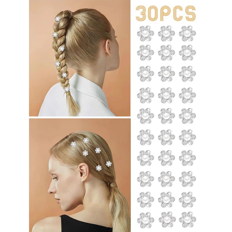 - Color: 30Pcs Mini Pearl Rhinestone Hair Clips