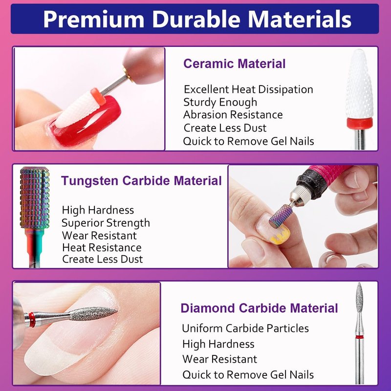 - 💎STURDY & DURABLE: These brocas para drill nails are made with superior ceramic material and the highest precision standards diamond and tungsten carbide with superior strength, sharpness, heat dissipation. Not easy to break, rust or deform. Easy to clean and long-lasting use.