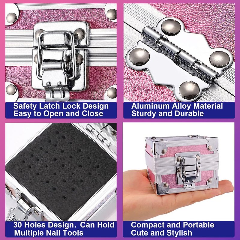 - 💟CUTE & CONVENIENT NAIL DRILL BITS HOLDER: Comes in an Aluminium Alloy nail drill bit case with sponge inner, which is rust-proof, strong and resistant to falling, can fix the nail drill tips well, prevent dust and lost. The compact size is easy to carry in your handbag, backpack, luggage, or pocket.