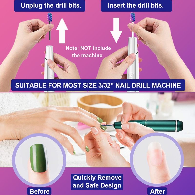 - 💅VARIOUS OCCASIONS: Universal 3/32 inch stainless steel shank fits for most electric nail drill machines. The stylish nail bits organizer allows you to find the nail art tools easily and quickly. Great choice for nail salon, beauty parlor, spa or personal manicures at home at home.
