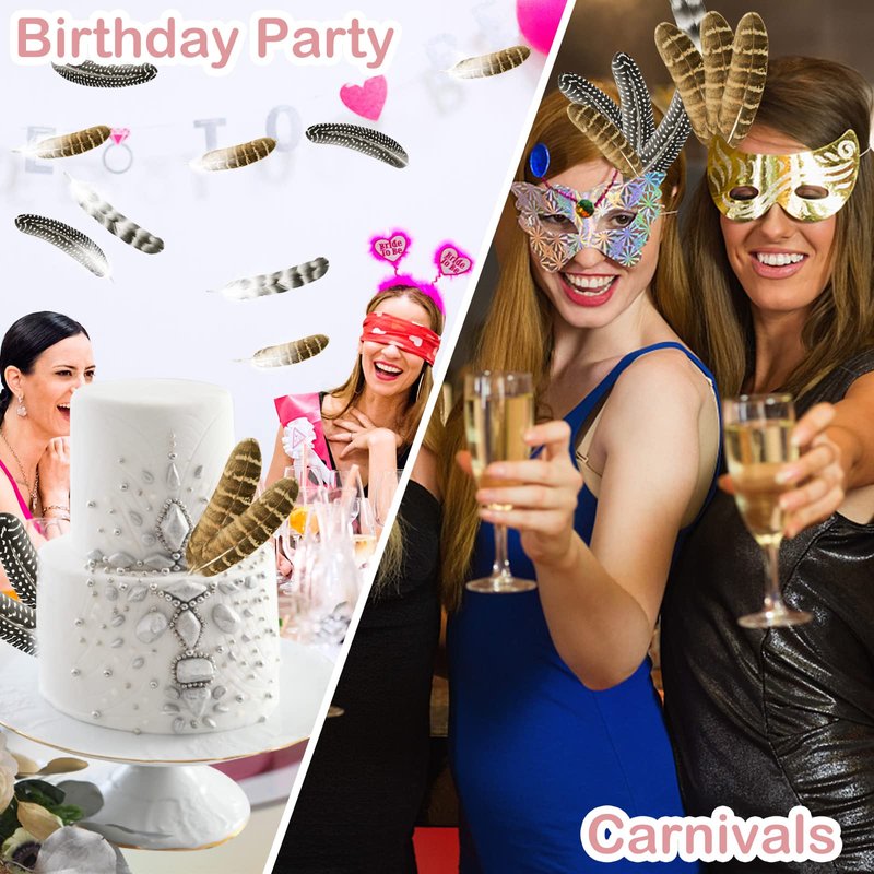 Natural feathers can be used in flower arrangements, masks, dream catchers, hats, garlands, and more. These feathers are suitable for various occasions, such as carnival parties, birthday parties, wedding decorations, Halloween decorations, home decorations, and so on.