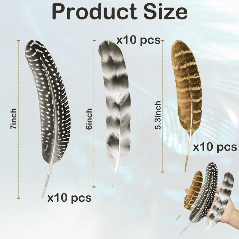 - 【What You Get】 You will get 30 pcs mixed natural feathers, 3 styles, each style has 10 pcs, and each guinea fowl feather is about 5.3-7 inches. Sufficient quantity is enough for your daily use and replacement needs; you can also share it with your friends and family. If you have any questions about our products, you can connect us anytime and we will reply as soon as possible.